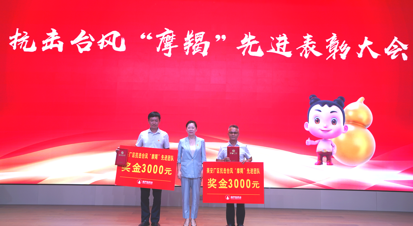 AG8旗舰厅药业集团举行抗击台风“摩羯”先进表彰大会